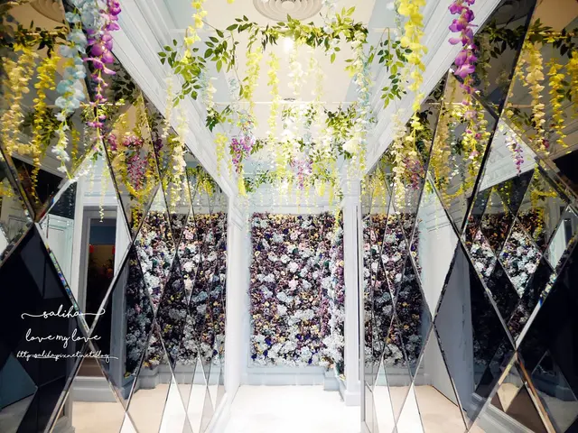 花葉自天花板垂下,兩旁是很時尚的菱格鏡,