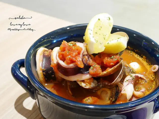 料還不少,裡頭有蛤蜊、白蝦、魷魚、淡菜等,