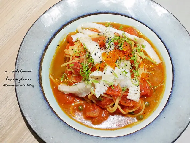 這盤麵主要是清酸的番茄味,再以鮭魚卵帶出鹹味跟層次,