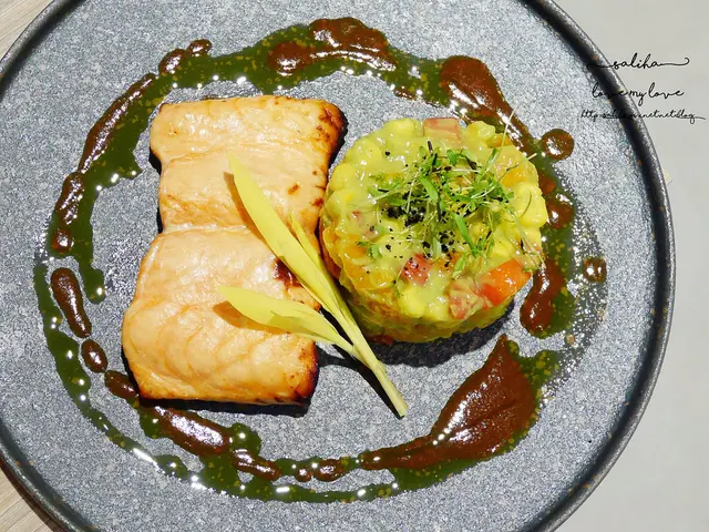 蜂蜜味增烤鮭魚酪梨水果塔塔
