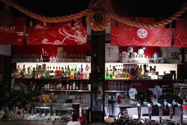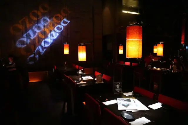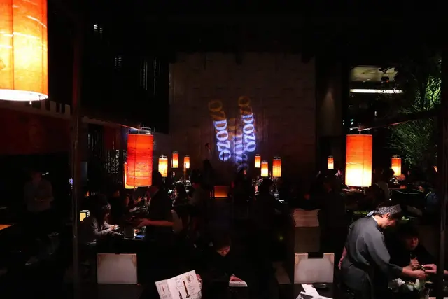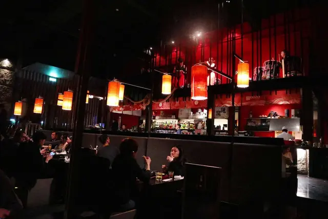 寬敞挑高的時尚居酒屋外觀低調又迷人,夜晚下透明窗投射出一盞盞紅色燈籠,走進來像是來到不一樣的世界,熱鬧又繽紛的微醺夜晚。
