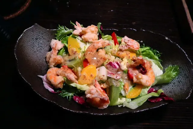 酥脆可口的鮮蝦仿如在生菜上彈跳,整體鮮香爽口,又有水果點綴讓人意猶味盡,非常值得點來吃的開胃前菜。