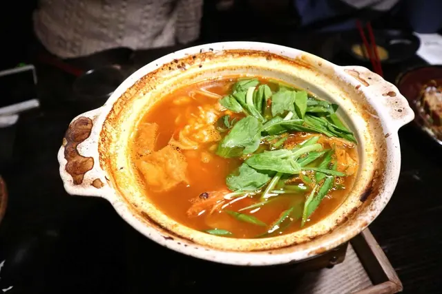 最後結尾暖呼呼熱湯,裡面有3隻超大鮮蝦與時蔬,入飲暖心熱湯喝起來像是韓式辣醬湯非常消食,少量的米飯更讓人覺的滿足不已。