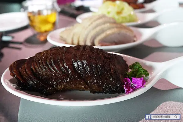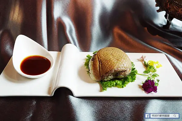 「南京鹹水鴨」鹽水鴨是南京有名的特產,至今已有一千多年歷史;其特色為皮白肉嫩,肥而不膩,鮮嫩味美,每年以中秋前後的鹽水鴨色味最佳。主廚做法則將鴨放入清水浸泡,去除血水、洗淨瀝乾,然後用大量海鹽拌入花椒,均勻塗抹鴨身腌二小時,與生薑、蔥、花椒、八角等香料包的清滷中浸二小時,取出置放通風處風乾。然後再以清水加入生薑、蔥、紹興酒、鹽等以大火燒開後改小火燜煮45分(不可燒滾),瀝乾、冷卻即成。