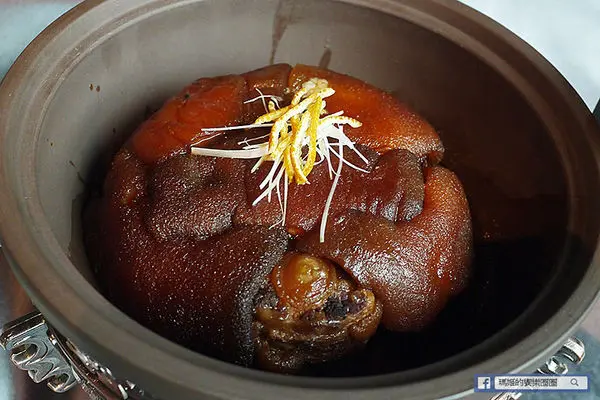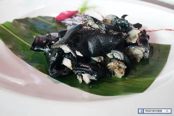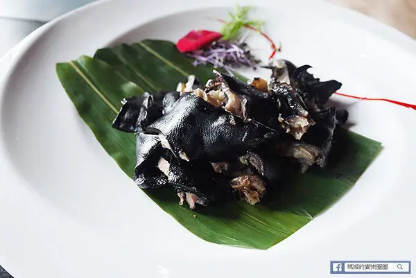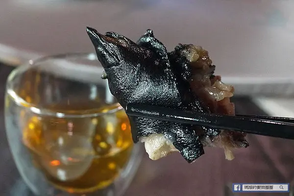 「美齡粽香賽熊掌」前面有介紹過它的作法了,會呈現黑色是因為用了烏樹汁浸泡15小時,再蒸15分鐘等繁複的調理過程,它保留住豬腳本身豐富的膠質,卻又清爽不油膩,彈牙的口感讓人不知不覺啃完一塊又一塊的豬腳,這也是一道很棒的下酒菜啊!