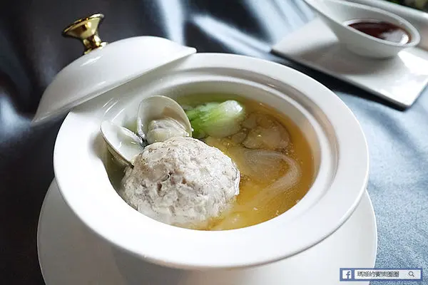 蔣總裁獅子頭」主廚選用肥瘦各半之的去皮五花肉,以手工剁碎增加肉質彈性,再加入了鹽、蝦子與瑤柱絲一同拌入,蒸3-4小時成型,再放入以豬皮、豬骨頭熬製高湯燉煮4小時使其入味,又因蔣公為奉化人嗜吃蛤蠣,師傅投其所好再加入蛤蠣燉煮,清澈湯頭更添獅子頭鮮甜度。