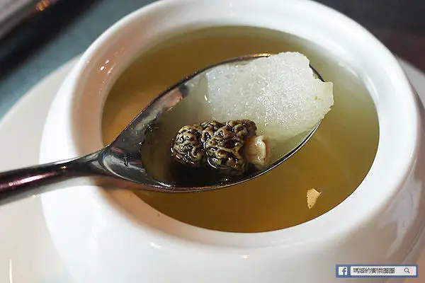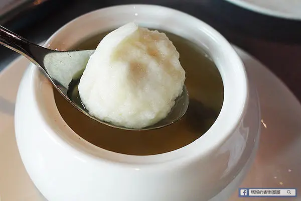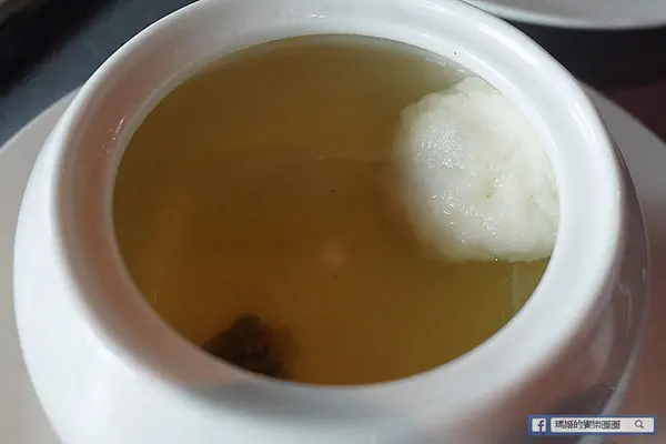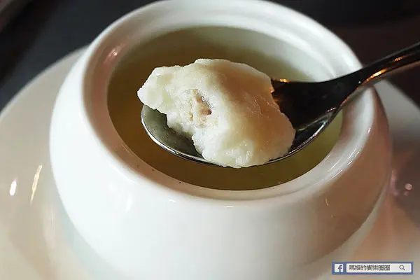 珍菌燉芙蓉雞以個人一盅的方式呈現,裡面除了白色丸子,還有竹苼及珍菌菇。