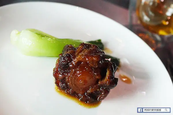 張學良紅燒黑豬肉以翠綠的青江菜,團團圍住燒得通透的五花豬肉,看起來就Q彈可口,就連我不太敢吃五花肉都想嚐嚐看是何種滋味。