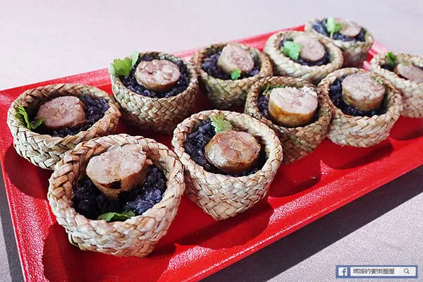 此道料理也是黑官膳裡的一道美食,用天然的烏樹汁為染料,沒有化學成份,增加米飯的味道且有營養價值。而香腸在這道料理中也扮演著巧妙的角色,更能提出烏香飯的層次風味。