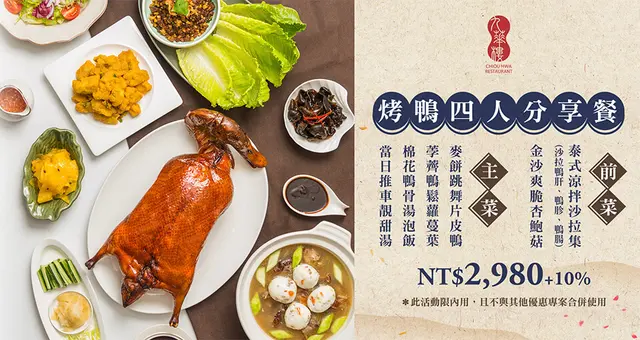 今天特別來吃九華樓推出的烤鴨四人分享餐,吃完大家都超級滿意!不僅餐點、服務都是大飯店水準,份量更是出乎意料的多,五個大人吃都沒有問題,實在太划算!馬上被我列入家庭聚餐必推餐廳!