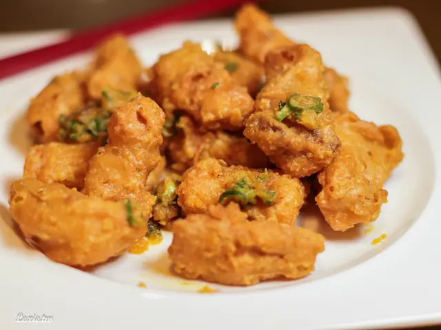 雖然金沙杏鮑菇是道常見的菜色,但這真是我吃過數一數二喜歡的,外皮裹上一層薄薄的脆皮,咬下去會咖ㄘ感,鹹蛋的黃的鹹香滋味完全被炒出來而且扒的緊緊的,中間的杏鮑菇咬下去的確是飽水多汁,整體吃起來也不覺油膩,我不能想像還有比這更好的了。