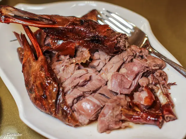 將鴨片下來後,鴨腿、鴨頭直接切塊送上搭配紫蘇梅醬,沒想到這鴨腿一吃也是嚇傻我了,怎麼這麼嫩阿阿阿阿阿!光這樣單吃就好美味,完全出乎意料。