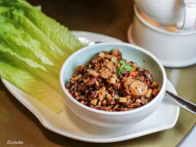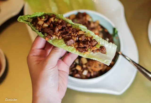 鴨鬆一送上來先用香氣攬住你的嗅覺,加了各種香料爆炒的鴨肉散發出陣陣逼人的香味,裡面加了許多荸薺來提升口感,還有一些老油條,整體調味偏重一些,包著爽脆的羅曼一起享用剛剛好!