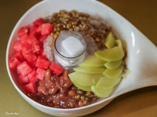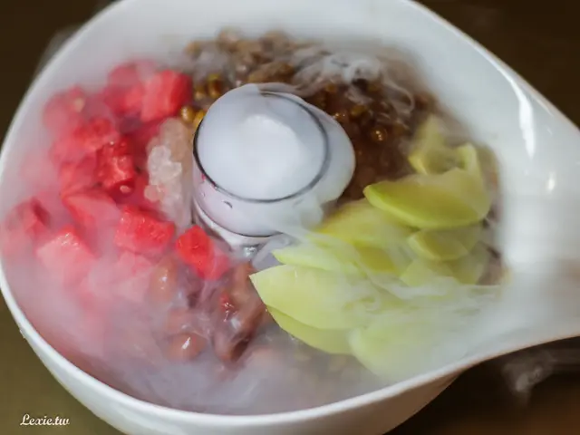 玩夠了以後雲霧散去,發現裡面料很豐富,有大紅豆、綠豆、西瓜與情人果,還會附上一盅煉乳。這餐就在這個最熟悉的甜蜜古早味中畫下句點。