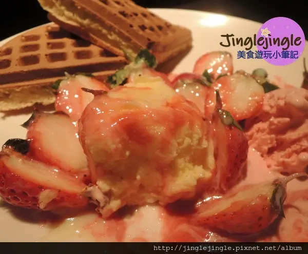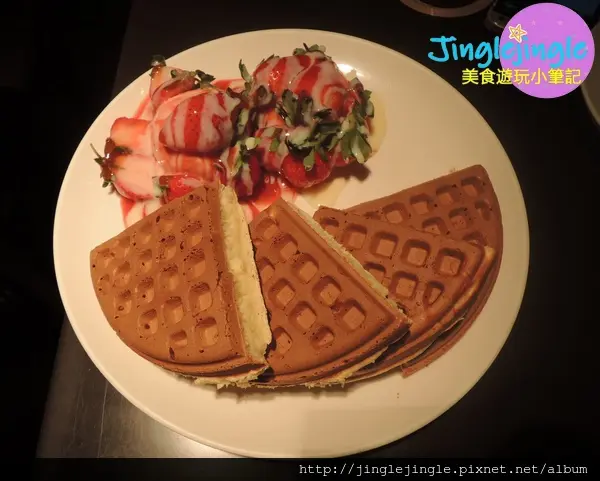 大顆飽滿又鮮紅的草莓加上厚度很厚的鬆餅整個視覺效果很好 哈哈