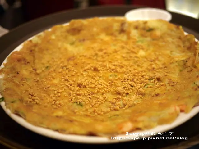 家鄉水瓜烙$570(裡面有著絲瓜以及蝦仁。跟之前吃過錦州街上的美麗餐廳所賣的煎絲瓜差不多,但要價只需$200而已。這道菜的的材料費真的很便宜阿,賣這種價格真的有點超過。)