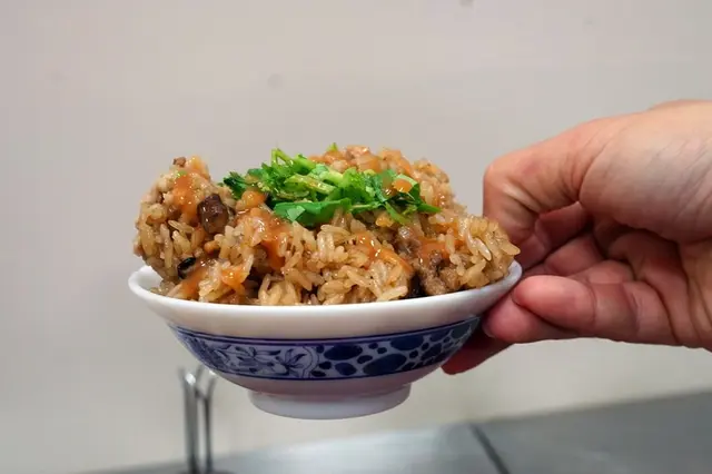 他們的油飯的口感是我喜歡的口感,軟 但是又帶有彈性,而且米粒間不會太甜,味道樸實,吃起來非常的順口好吃,如果覺得味道不夠,醬料還可以隨意加啊,真是不錯吃的油飯^^