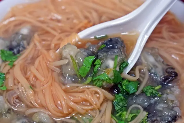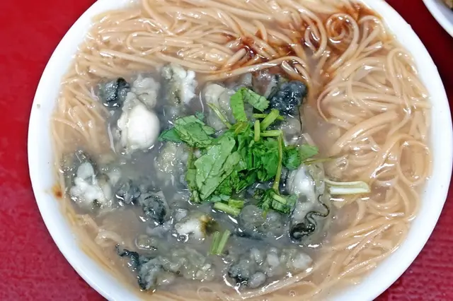 他們的蚵仔是有裹粉的,所以口感上會與沒裹粉的增加了一些微Q的口感,鮮度很好啊~麵線調味還不錯,然後我自己再加了蒜泥和辣椒下去吃,更合我的味啊^^