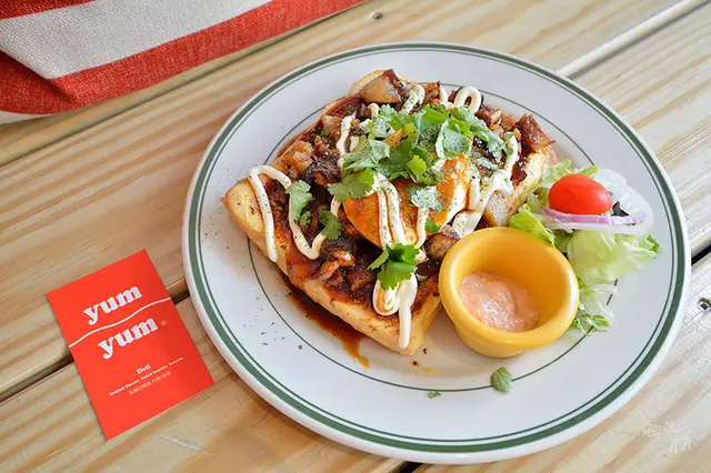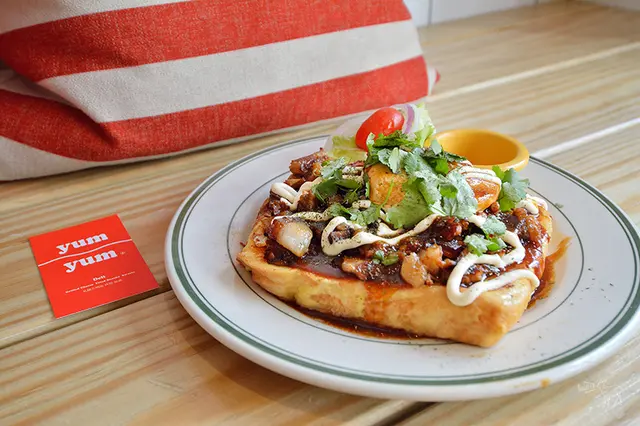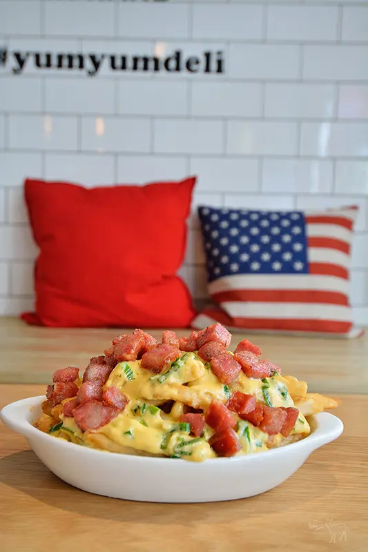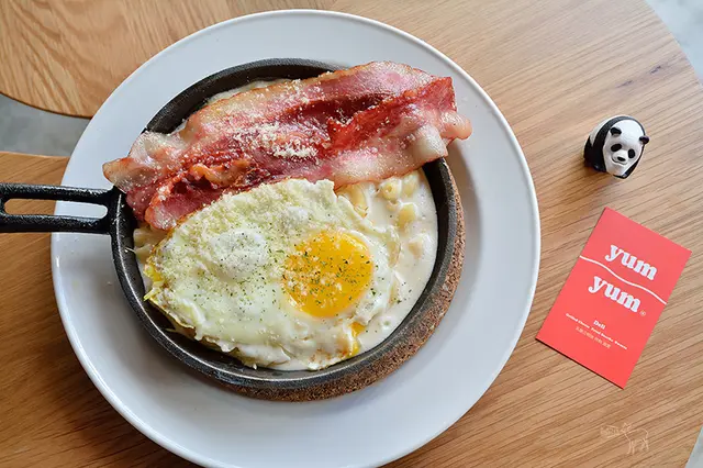 台北東區明曜百貨(捷運忠孝敦化站附近)的YumYum Deli是以中西合併為特色的早午餐店,像是炸排骨乳酪三明治、蒜苗香腸起士薯條或是滷肉等,味道也不錯!