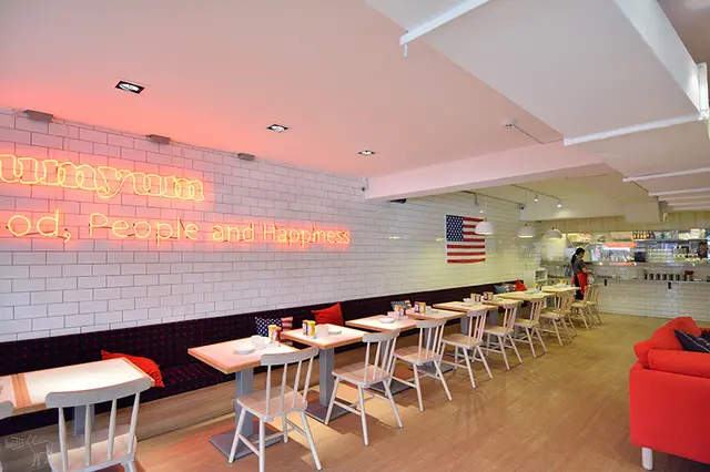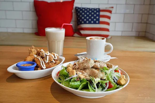 店裡為帶有居家感的美式風格,位置寬敞,最後方則是半透明化的用餐區。