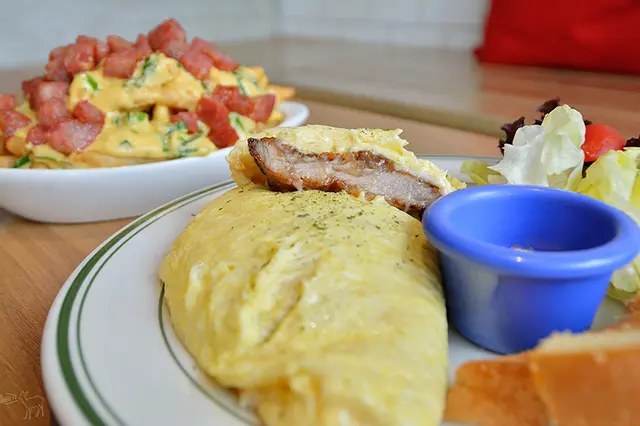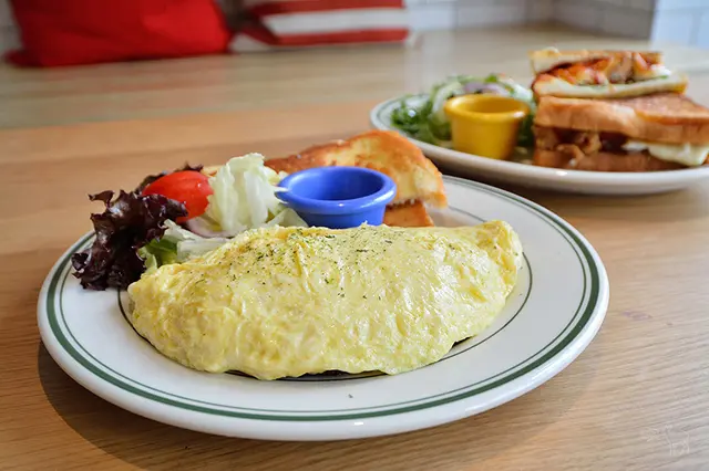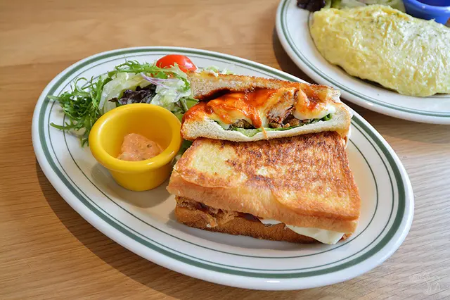 歐姆蛋口感軟嫩,比較特別的部分是有包入台式炸排骨,排骨本身料理的不錯,肉軟厚實,搭配起歐姆蛋很像在吃中式料理的感覺,但因為我個人覺得此歐姆蛋吃多會容易膩口(加上店裡的餐點味道都較重),若以後有來會想點台式排骨乳酪三明治。