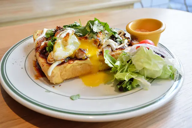 下方的法式吐司口感軟,是有花時間浸泡蛋奶液在去煎的,而不是稍微沾一下就煎,但當日的香氣上較為一般,又或許是被滷肉汁給蓋過了香氣。
