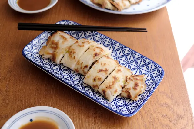 軟食力的蛋餅皮,裡頭放了些許綠蔥,屬於軟麵皮,不過外層吃起來還有部份微脆焦香,