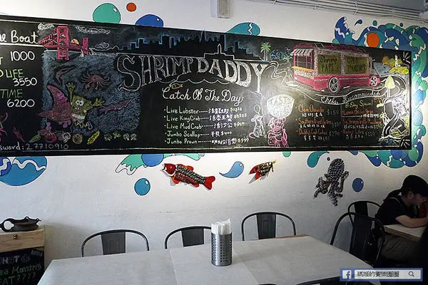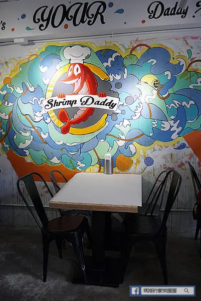 牆上笑顏逐開的蝦子更是店裡的LOGO,整個色彩繽紛的感覺非常有美式的熱情活力!