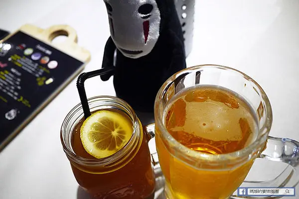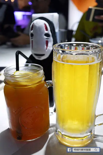 左邊是「甜茶檸檬汁」115元,右邊是「Orion生啤酒」170元,另外點汽水的話是無限輰飲的喲!(未成年請勿飲酒/請勿酒駕)