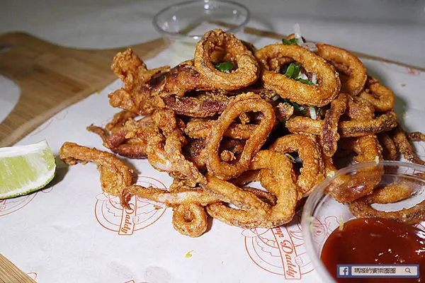 「加州炸花枝」250元,炸得香酥但卻又吃到花枝的Q彈,沾蕃茄醬或優格醬都不錯吃!