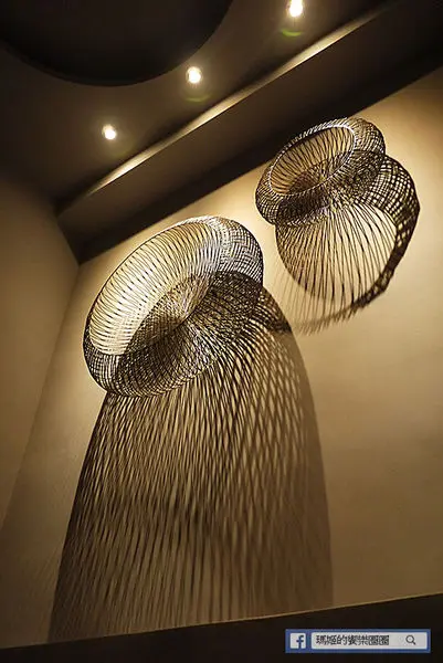 除了一樓外,地下室也有三間更加隱密的包廂,樓層通道間圓型牆飾在燈光投射下就像一個裝置藝術品一樣吸引人目光