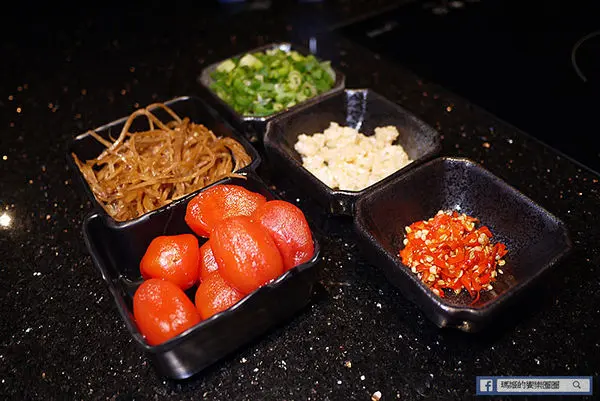 另外也有搭配的生辣椒蒜末和蔥花,依喜好自由配,小菜則是涼拌牛蒡絲和蜜漬蕃茄,二種味道都爽口又好吃