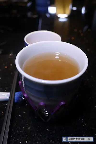 桌上也都備好漂亮的餐具和熱茶,醬料的部份右邊是日式醬油,左邊是柚子醬,搭配肉類海鮮或蔬菜都很適合