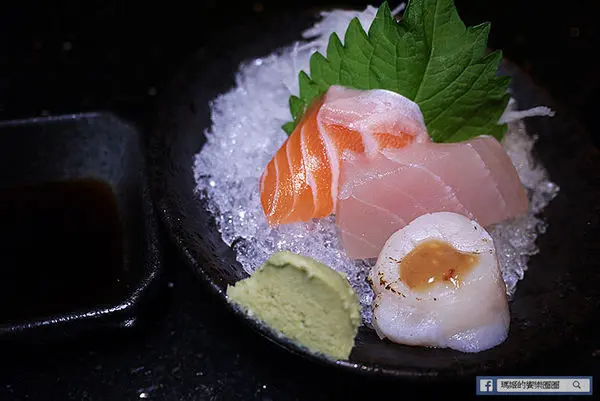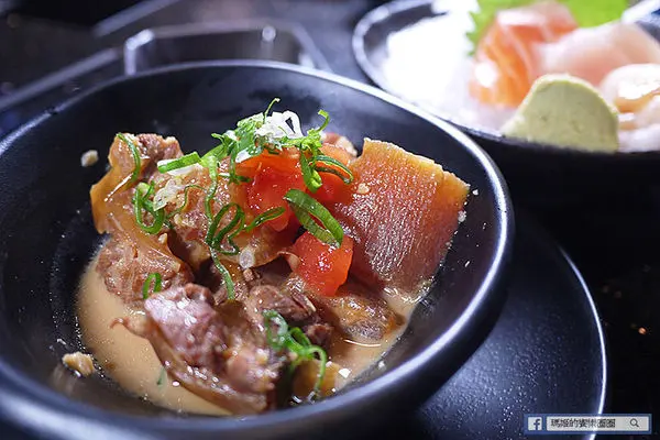 開胃菜有燉豬肉和生魚片可選,我們就各點一種,可以都吃到,生魚片有鮭魚旗魚和日本干貝,搭配現磨的山葵,干貝表面在微微炙燒後增加了香氣,軟嫩的口感讓人還想再多吃一些