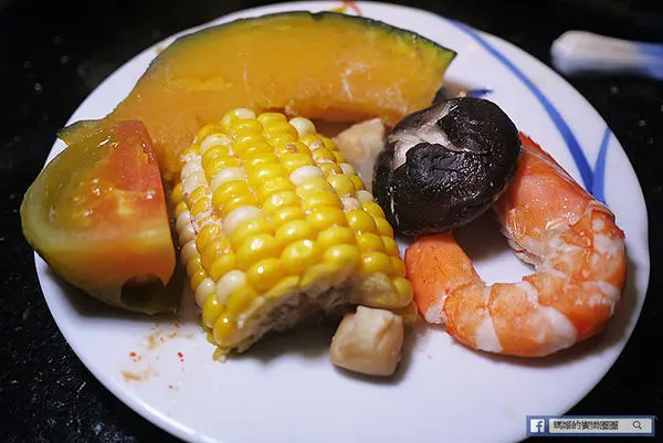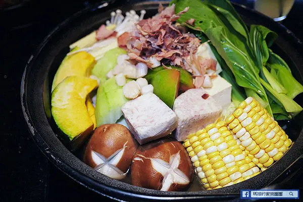 而這綜合蔬菜盤裡全部都是當季鮮蔬,包含了青江菜高麗菜香菇、金針菇、玉米蕃茄芋頭豆腐玉米荀黃瓜南瓜等等,多達十幾種,但就是沒有熱量高又沒營養價值的丸餃類,全部都是食物的原形,這樣的蔬菜盤我最愛了,可以盡情的放入口中吃