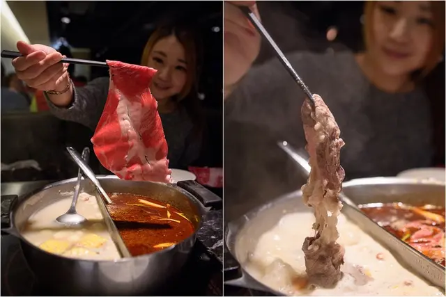 湯鍋上桌啦~兩色鴛鴦鍋看起來就好可口