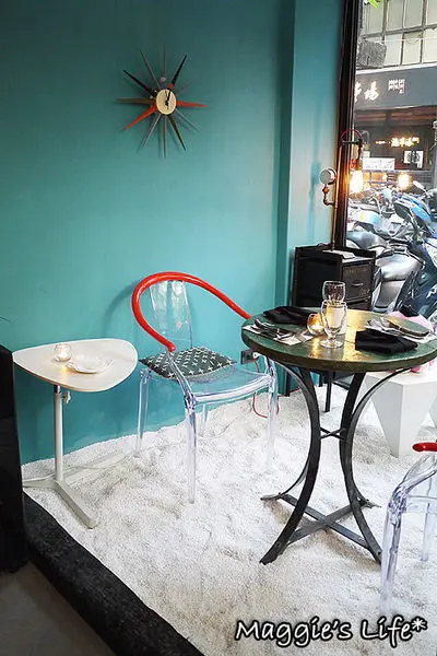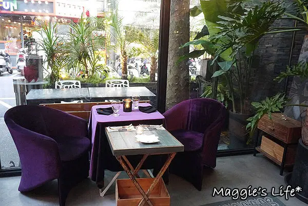 另一區以紫色絨布圓椅搭配沙發,這個區塊好適合幾位姐妹淘一起小聚,我也挺喜歡的!