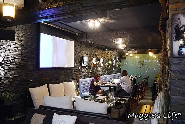 這區就像家裡的起居室,配上大型投影螢幕,把家搬到這裡來了,可以很放鬆的享受美食和音樂。
