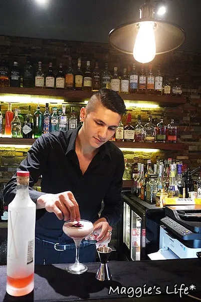 回過頭來正好看到餐廳裡的型男酒保正在調製客人點的調酒,外表俊帥的酒保,看來是許多女性朋友來此的一個重點,我來之前看過好幾篇文章裡都有他,今日親眼目睹果真帥氣迷人!而且在用餐過程中,不斷看他聽他搖出有節奏的調酒聲,就像是在欣賞打擊樂一樣悅耳!