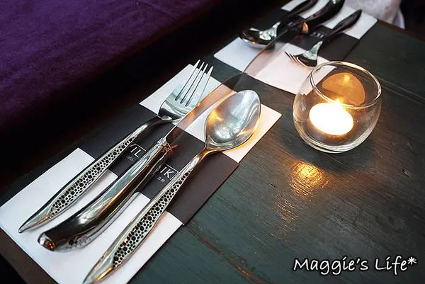 回到座位看到餐桌上備好的餐具很有質感,而且沉甸甸的。