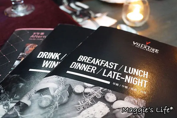 菜單裡有什麼好吃的呢?!服務人員送上了新做好的菜單,有早午晚餐和宵夜,也有飲料調酒和下午茶,雖然沒有24 小時的服務,但其實來這裡除了睡覺時間外都能有東西吃。
