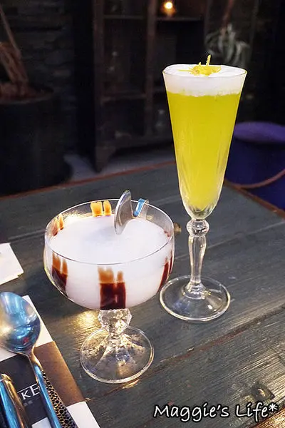 調酒分別點了哈蜜瓜果香調酒和咖啡奶香調酒,都是比較低酒精,適合女性的調酒。(未成年請勿飲酒/請勿酒駕)