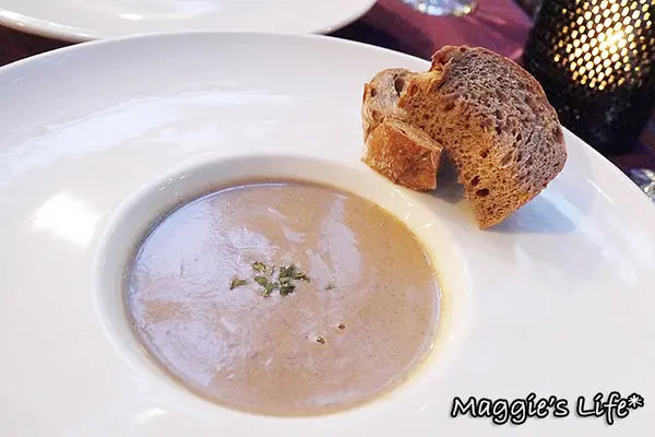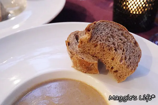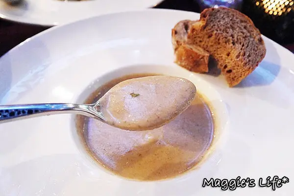 此時搭配軟法麵包來中和鹹味,這軟法麵包超軟又有彈性,害我都想問是否可以續麵包了,但幸好沒有衝動,不然後面的主餐我就吃不下了XDDD。
