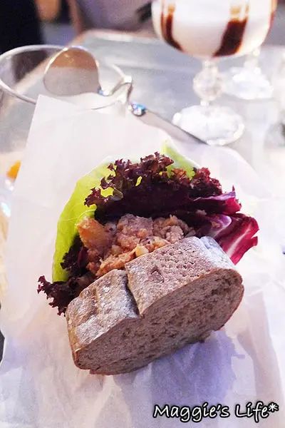 外酥內軟的雜糧軟法夾上生菜,以墨西哥風味把蒸烤後龍蝦肉搗碎夾入麵包裡。