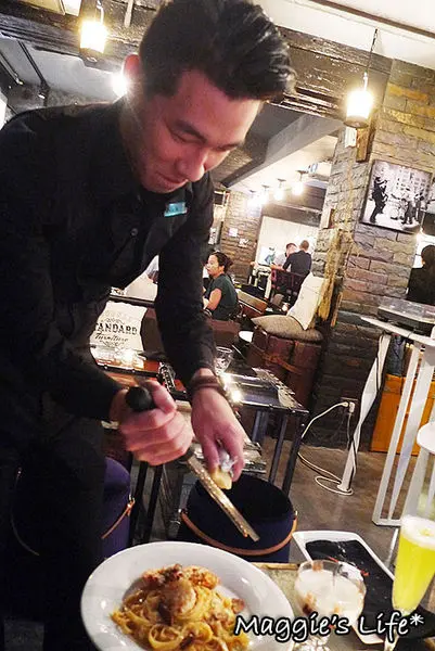 接著服務人員就會上來磨上起司,增添風味。店裡的服務人員都是特選的帥哥美女,讓人賞心悅目啊!