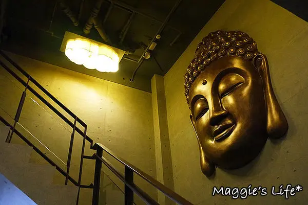 往二樓的樓梯通道一抬頭就看到彿祖的尊像,看起來威武壯觀。