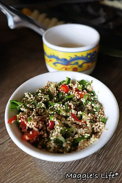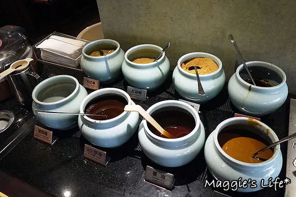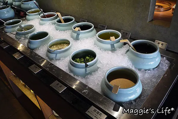 鍋底送上來後,走到醬料區去拿喜歡的醬料和香料,這碗滿滿的醬料可以挺嚇人的,但可不是我拿的,我多半都吃原味,除非真的沒味道我才會沾醬來吃。