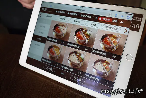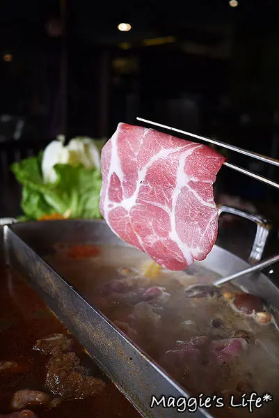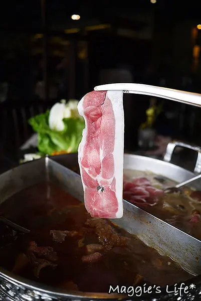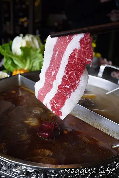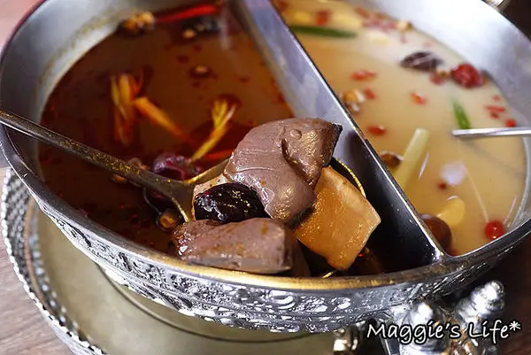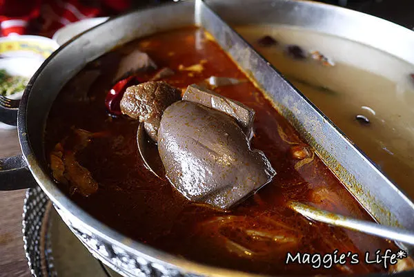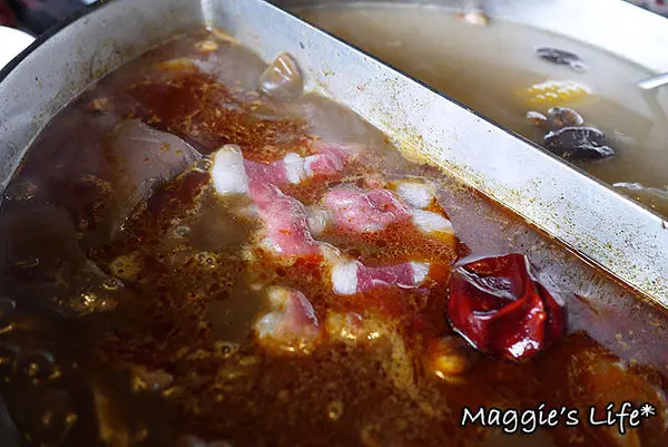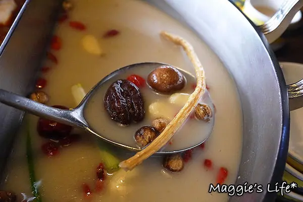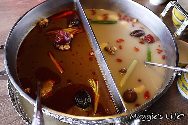 我們點的鍋底是麻辣+養生鍋,看得出來二種都是用中藥風味熬煮的湯頭,聞起來有香氣,這樣鍋底的價格成人午餐是158/人,並不會貴。