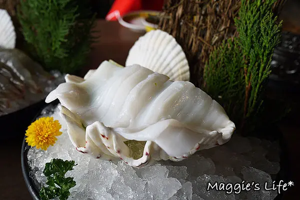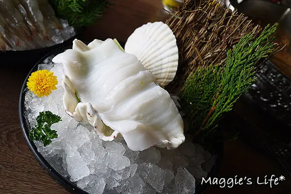 「澎湖軟絲」188元,這個擺盤蠻華麗的,軟絲新鮮彈牙,口感很不錯。
