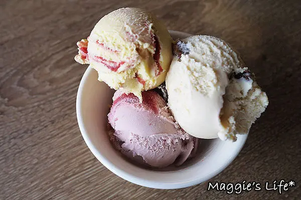 最後當然是吃冰淇淋的時間,有16種口味可選要我每種都吃是不可能的任務,自然是選自己喜歡的口味先下手,我先挖了綜合野莓、蘭姆葡萄和芒果口味,本來吃完還想再去拿提拉米蘇口味來吃,但我的胃不斷在提醒我裝不下去了,很怕真的吐出來還是作罷,不要太勉強,呵呵。